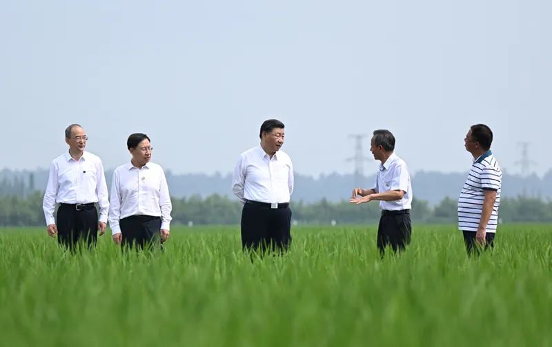 習近平走進(jìn)試驗田,察看水稻長(cháng)勢。農技人員向總書(shū)記介紹水稻試驗育種和種植推廣情況。習近平指出,水稻良種育種周期長(cháng),需要反復試驗篩選,我國廣大農業(yè)科技工作者付出了艱辛努力,為保障國家糧食安全、確保老百姓豐衣足食作出了重要貢獻,功不可沒(méi)。推進(jìn)農業(yè)現代化,既要靠農業(yè)專(zhuān)家,也要靠廣大農民。要加強現代農業(yè)科技推廣應用和技術(shù)培訓,把種糧大戶(hù)組織起來(lái),積極發(fā)展綠色農業(yè)、生態(tài)農業(yè)、高效農業(yè)。我們有信心、有底氣把中國人的飯碗牢牢端在自己手中。