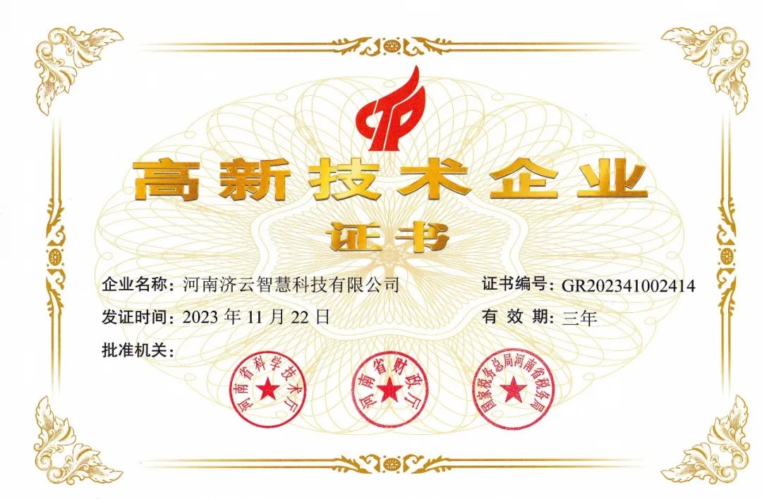 喜報!濟源投資集團所屬濟云智慧榮獲高新技術(shù)企業(yè)證書(shū)!